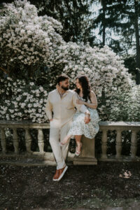 Victoria and Anthony’s engagement session at Parkwood Estate National Historic Site was straight out of a timeless romance. Nestled in Oshawa, this European-inspired garden estate offered the perfect blend of architectural elegance, lush gardens, and vintage charm. What made their shoot even more special? Anthony brought along his classic car, adding a personal and stylish touch that tied their whole story together beautifully. As a Hamilton engagement photographer capturing love stories across Ontario—from the GTA to Niagara—I always encourage couples to bring something unique to their session. Whether it’s a sentimental location, meaningful props, or simply the energy you bring as a couple, those details make all the difference. Parkwood Estate, with its grand staircases, manicured grounds, and historical charm, is one of my favourite locations for engagement sessions in Ontario. If you’re dreaming of engagement photos that feel elegant, romantic, and full of personality—whether you’re in Hamilton, Oshawa, Toronto, or Niagara—I’d love to help create something unforgettable together.