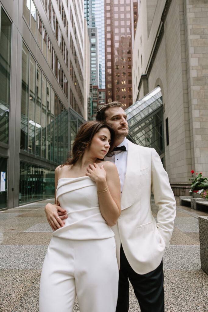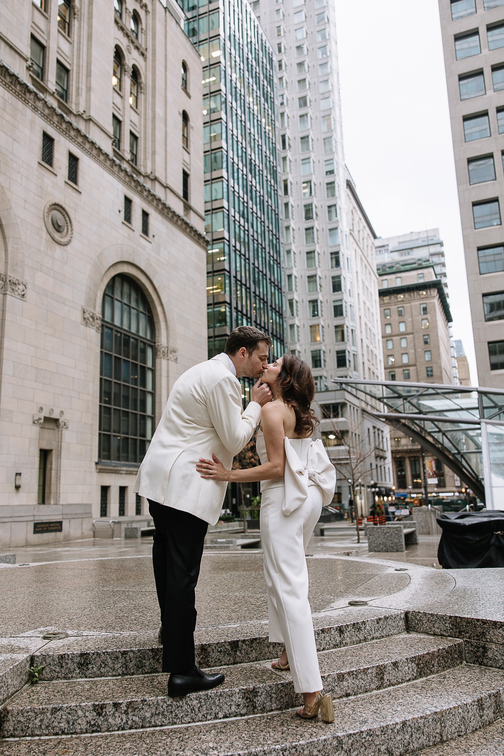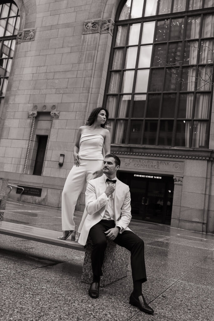 As a Toronto wedding photographer, I always love photographing couples in locations that feel both personal and visually striking. The Financial District offers exactly that—clean city lines, historic buildings, luxury architecture, and that iconic downtown Toronto energy that creates such a cinematic feel for engagement and anniversary photos.