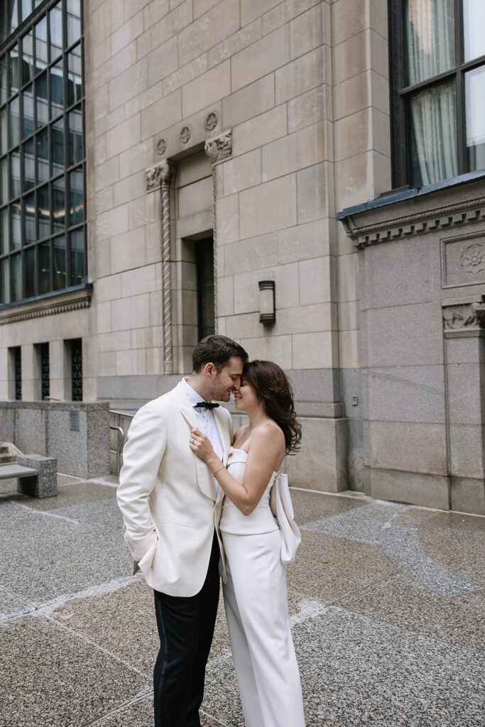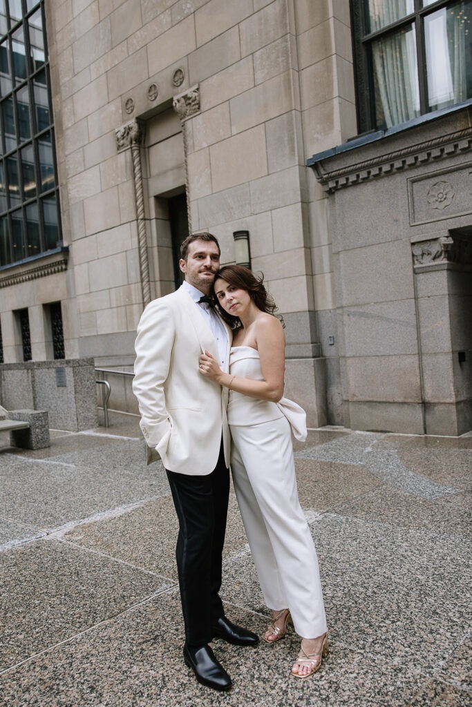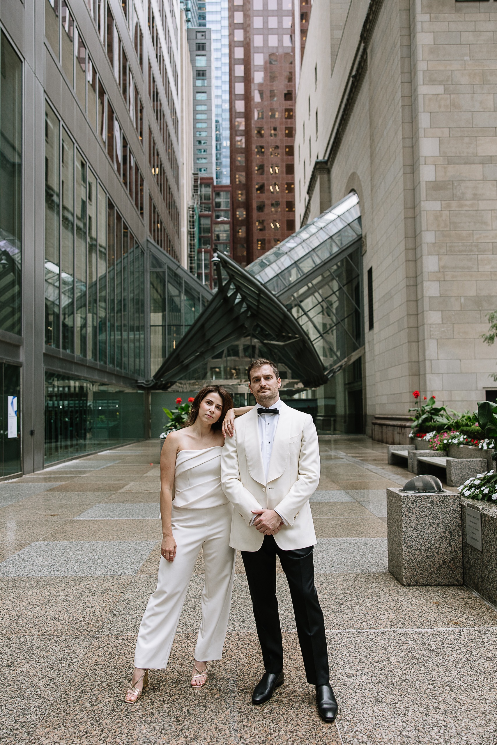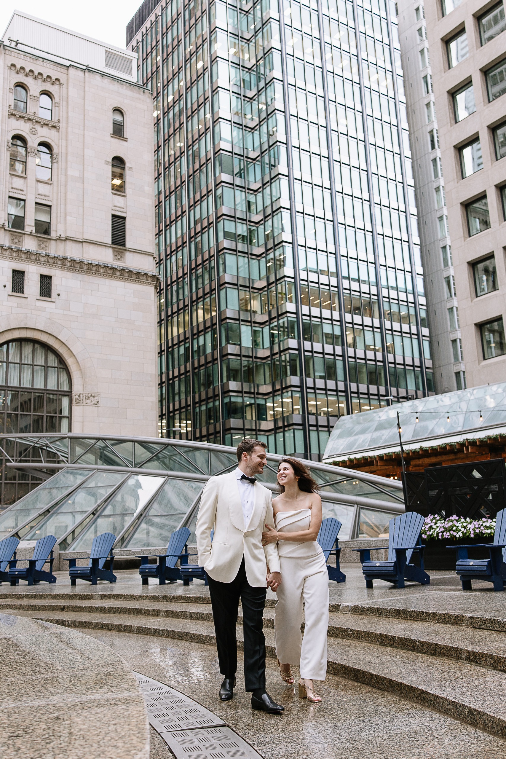 As a Toronto wedding photographer, I always love photographing couples in locations that feel both personal and visually striking. The Financial District offers exactly that—clean city lines, historic buildings, luxury architecture, and that iconic downtown Toronto energy that creates such a cinematic feel for engagement and anniversary photos.