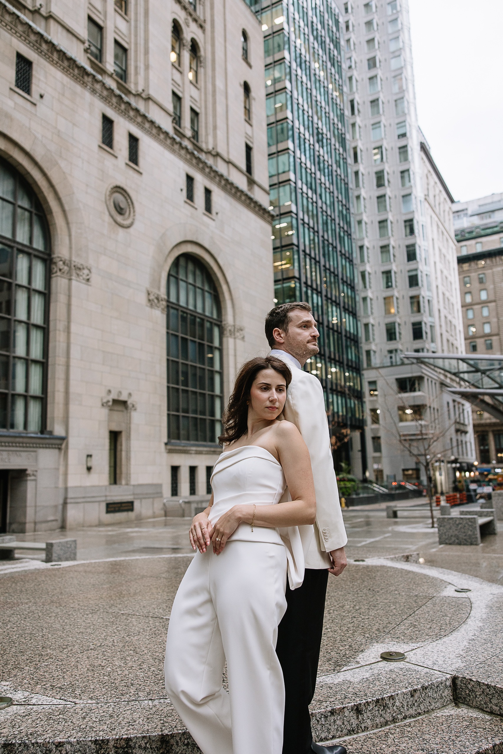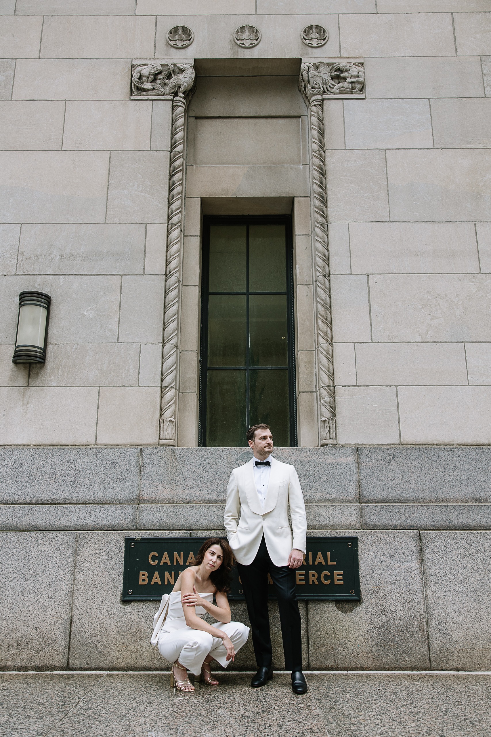 Walking through the Financial District gave us so much variety for their photos. From the timeless stone architecture of Old Toronto buildings to the modern glass towers and quiet side streets, every corner gave us a different backdrop while keeping that elevated downtown aesthetic. It felt romantic, editorial, and effortless all at once.